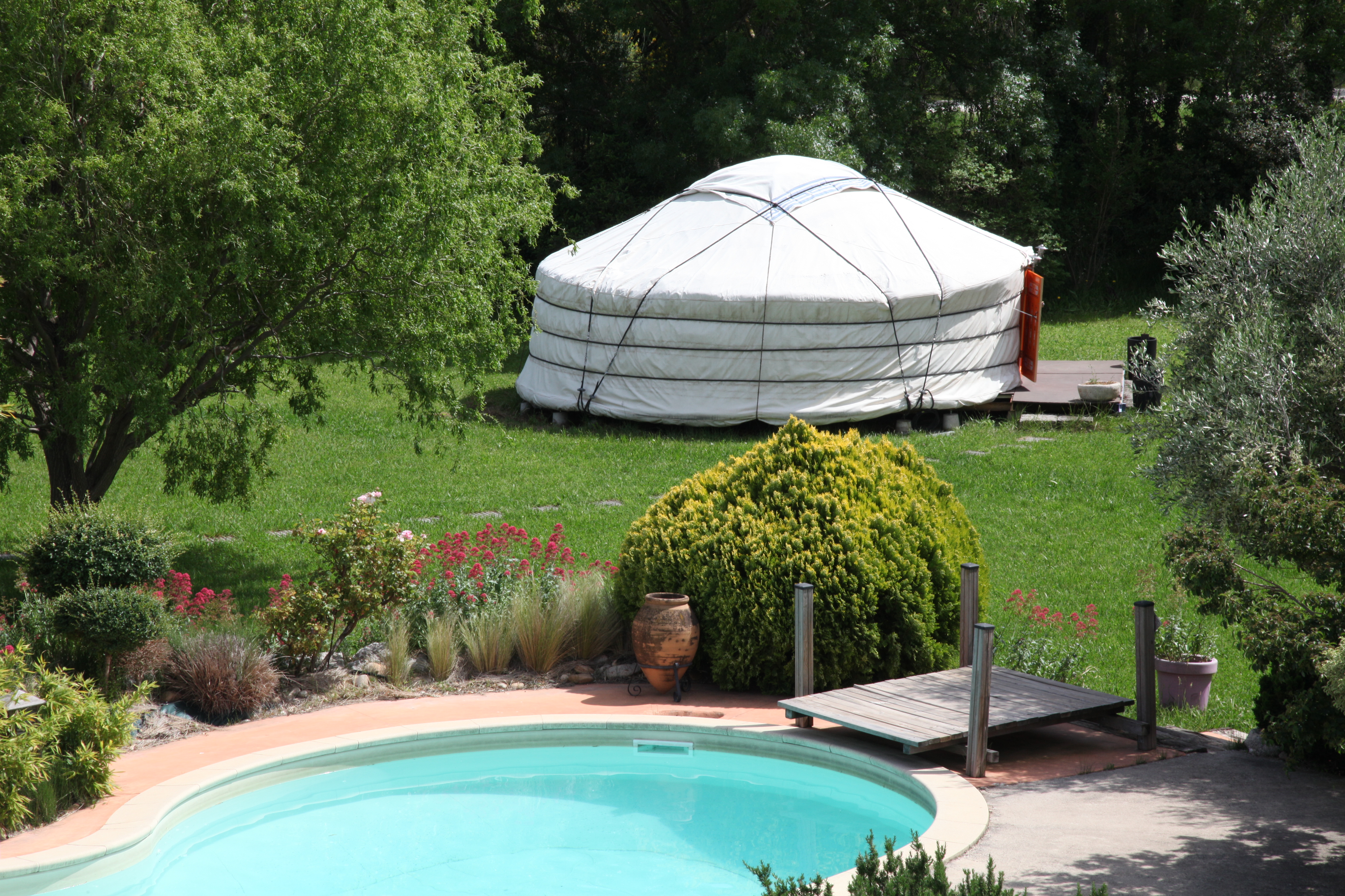 Installée à Eyguières (13), village situé au pied du massif des Alpilles, en Provence, la yourte est montée sur un terrain de 2500 m².